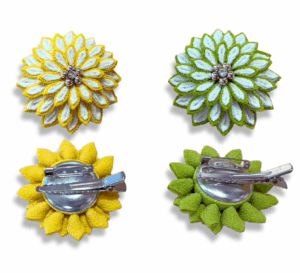 このブローチは、雛飾りにも使える小物としてデザインされたもので、重陽の節句を象徴する“菊”の花をモチーフにしています。